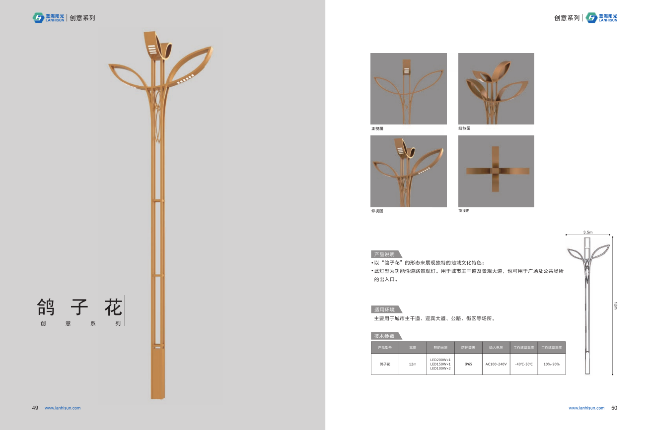 青島城陽景觀路燈鴿子花