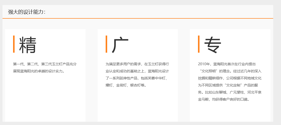 青島藍(lán)海陽光能源有限公司設(shè)計中心下設(shè)方案設(shè)計部和機械結(jié)構(gòu)部兩個部門。其中方案設(shè)計部負(fù)責(zé)照明方案及相關(guān)產(chǎn)品燈型的設(shè)計,機械機構(gòu)部主要負(fù)責(zé)各類設(shè)計產(chǎn)品的試制。 目前,設(shè)計中心提供的設(shè)計方案用于全國近30多個城市,經(jīng)典案例多達(dá)100余個,致力于成為國內(nèi)一流的設(shè)計團(tuán)隊,為客戶提供高品質(zhì)的設(shè)計服務(wù)。